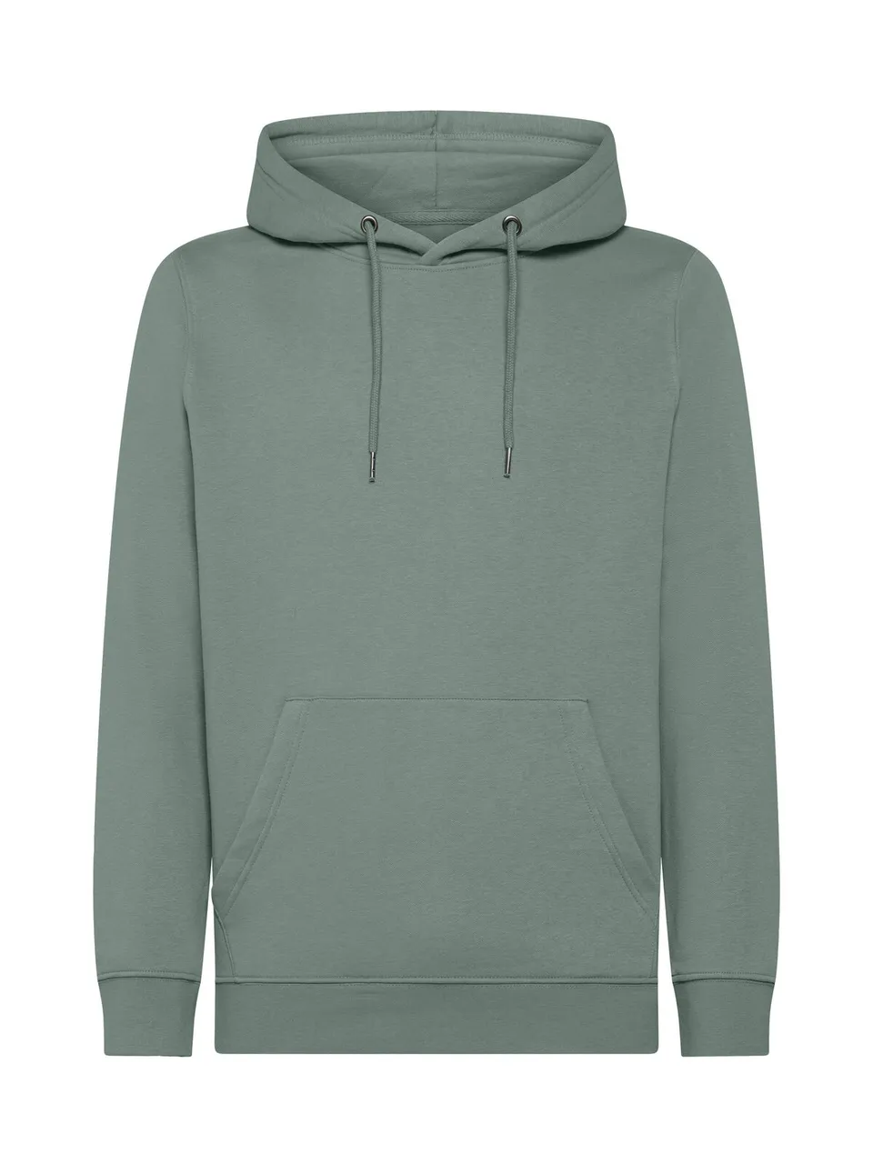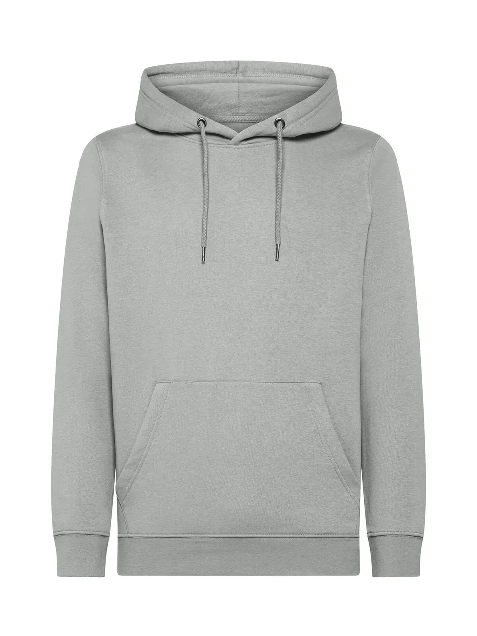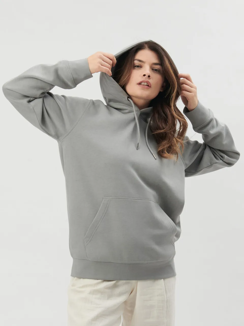 Il tessuto garzato ha una sua grammatica. Morbido dalla prima volta, senza doversi guadagnare niente. La Pepper non si spiega - si indossa e poi non si toglie più. Il cappuccio doppio strato cade con quel peso specifico che conosci subito. I cordini con punta in metallo brillano appena, senza gridare. Cotone organico fuori, dove la stampa prende vita. Riciclato dentro, dove nessuno guarda ma tu lo sai. Genderless non come categoria di marketing, ma come fatto concreto: questo capo non ha un destinatario, ha solo una misura giusta.