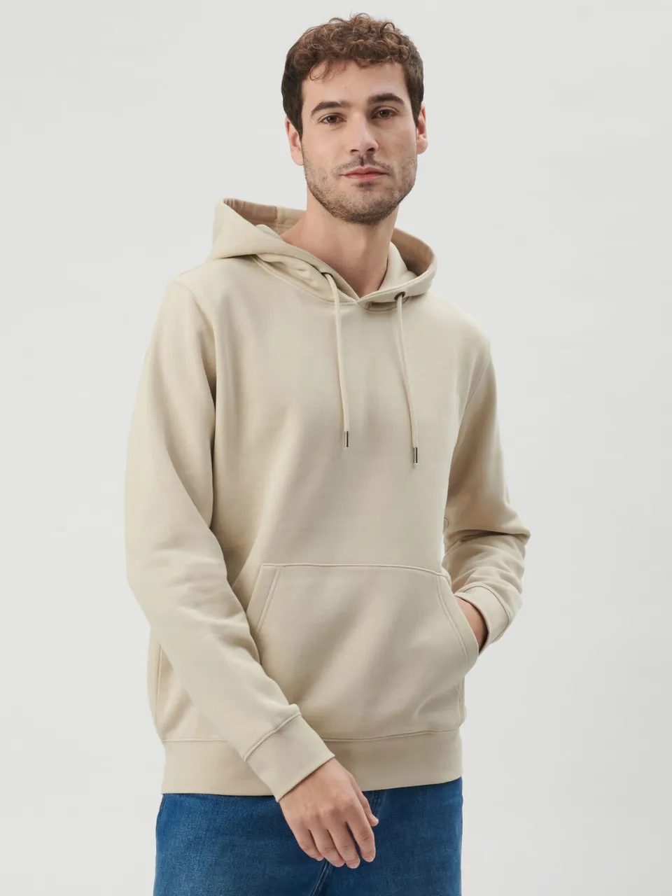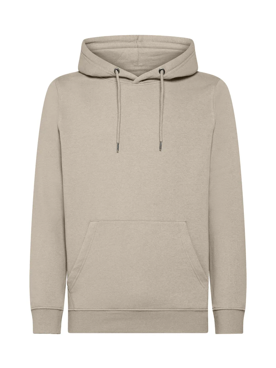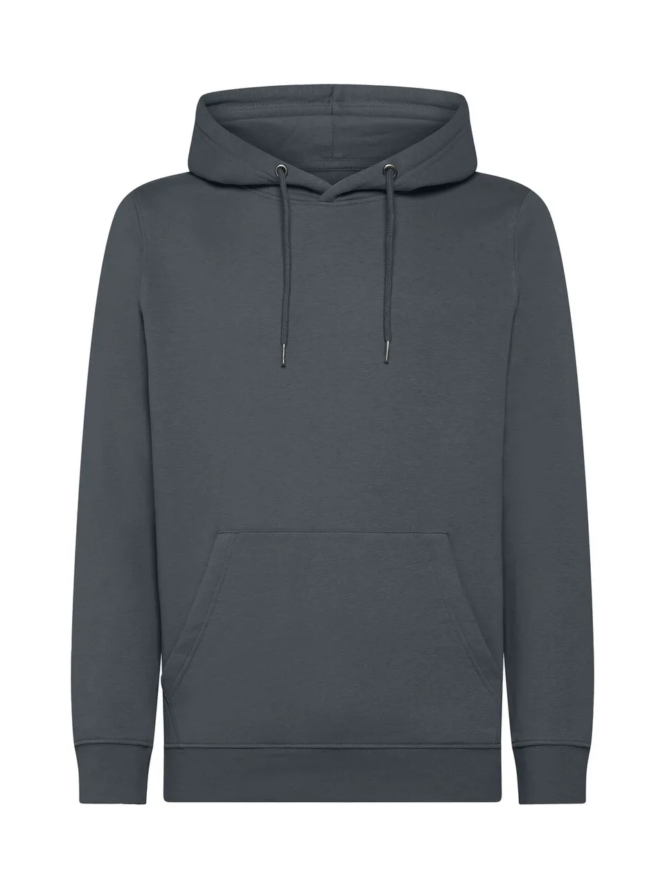 Il tessuto garzato ha una sua grammatica. Morbido dalla prima volta, senza doversi guadagnare niente. La Pepper non si spiega - si indossa e poi non si toglie più. Il cappuccio doppio strato cade con quel peso specifico che conosci subito. I cordini con punta in metallo brillano appena, senza gridare. Cotone organico fuori, dove la stampa prende vita. Riciclato dentro, dove nessuno guarda ma tu lo sai. Genderless non come categoria di marketing, ma come fatto concreto: questo capo non ha un destinatario, ha solo una misura giusta.